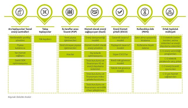 Bu amaçla, enerji sektöründeki ihtiyaçlar, altı ana başlık altında toplanıyor: Dağıtık enerji kaynaklarının yönetimi, elektrifikasyonun yönetilme ihtiyacı, şebeke altyapısı üzerindeki etkiler, artan enerji tüketimi, değişen tüketici beklentileri ve daha iyi veri yönetimi ihtiyacı. Olası ihtiyaçların giderilmesi için önerilen yenilikçi iş modelleri ise yapılanma, ürün ve deneyim açısından gereksinimlere bağlı olarak yedi kategoriye ayrılıyor:
