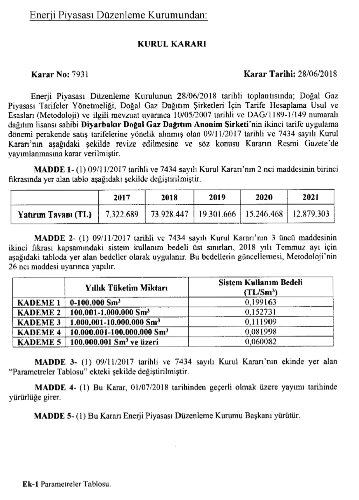 Enerji Piyasası Düzenleme Kurumu (EPDK), Diyarbakır’ın doğalgaz tarifeleriyle ilgili önemli bir karar aldı. Karar Resmi Gazetede yayınlandı.