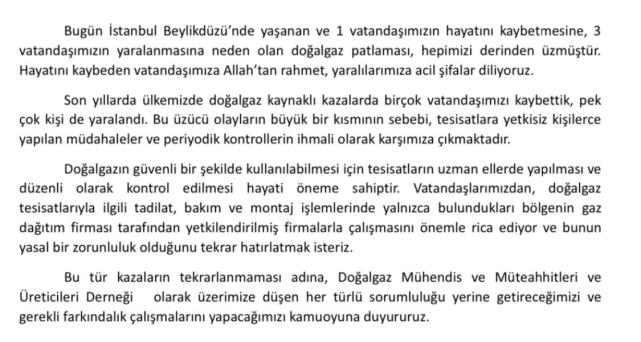DODER (Doğal Gaz Mühendisleri ve Müteahhitleri Derneği) açıklaması...