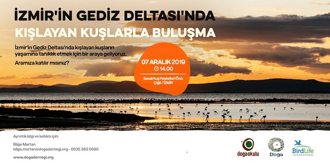 Doğa Derneği'nin konuyla ilgili bilgi paylaşımı şöyle: 7 Aralık Cumartesi günü İzmir'in Gediz Deltası'nda kışlayan kuşlarla buluşuyoruz. Çeşitli ördek türlerine, kuğulara, flamingolara, kıyı kuşlarına ve Delta'daki yaşama tanıklık etmek için aramıza katılır mısınız?