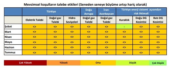 Enerji ve Tabi Kaynaklar Bakanlığı (ETKB)'na bağlı Enerji İşleri Genel Müdürlüğü (EİGM) Enerji - İklim Raporu'na göre yaz aylarında kuraklık riski düşük seviyelerde olacak. Benzer şekilde Doğu Avrupa ile İran ve Azerbaycan içinde doğalgaz, eltrik ve hidro seviyelerinde her hangi bir risk gözükmüyor.