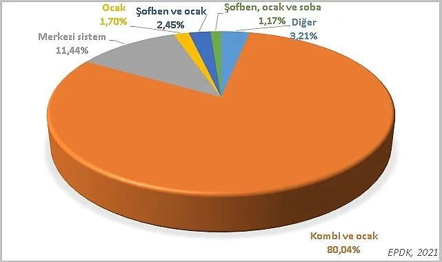 Resmi verilere göre doğal gazı en çok kombi ve ovaklarda kullanıyoruz. EPDL raporuna göre doğal gazın yüzde 80,04'ü kombi ve ocaklarda tüketiliyor. İkinci sırada yüzde 11,44 oran ile merkezi sistemler yer alıyor. Ve şofbenler yüzde 2,45 oran ile 3. sırada. (Veriler için kaynak: Enerji Piyasası Düzenleme Kurumu -EPDK 2021 Dpğal Gaz Piyasası Sektör Raporu)