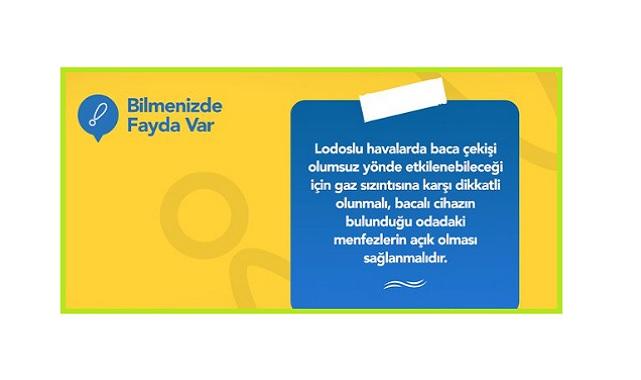 - ''İstenmeyen durumlarla karşılaşmamak ve güvenlik riski oluşmasını önlemek için doğal gaz bacasının ve menfezin etrafı kapatılmamalı, yakıcı cihazların sızdırmazlığı ve çekişi periyodik olarak kontrol ettirilmeli, banyo veya tuvalet gibi alanlarda ve yatak odasında kesinlikle bulundurulmamalıdır.''