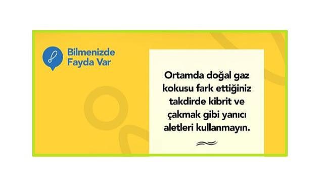 - ''Ortamda doğal gaz kokusu fark ettiğiniz anda ortamı iyice havalandırın ve yetkililere haber verin.''