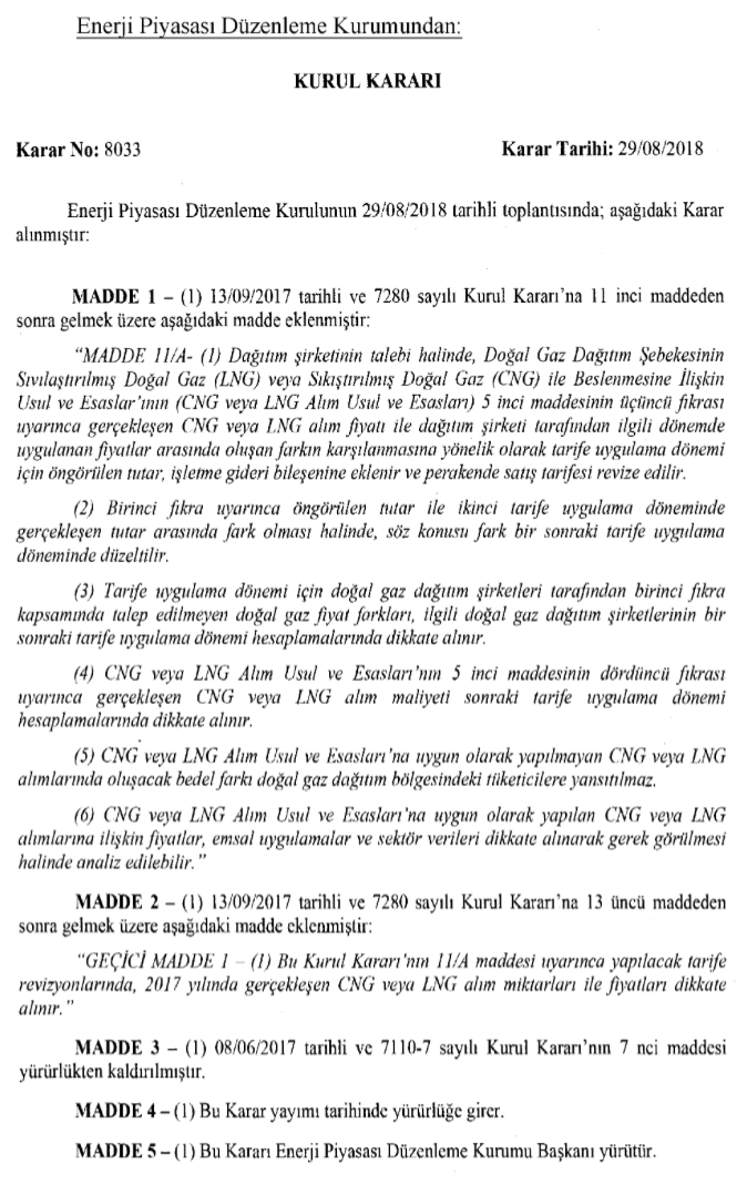 Enerji Piyasası Düzenleme Kurumu (EPDK), doğalgaz piyasası için yeni bir karar yayınladı.