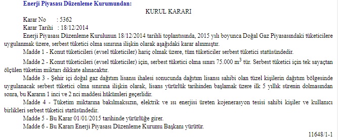 İşte 2019 yılı için geçerli olacak 2014 yılı EPDK Kurul Kararı: