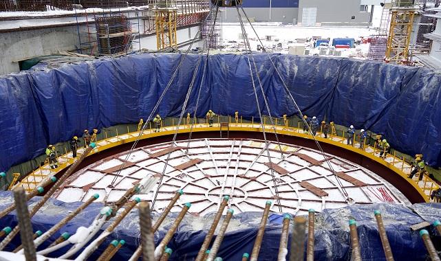 Toplam ağırlığı 165 ton olan çelik reaktör taban plakası monte edildi. İşçiler reaktör kabının ilk bölümü olan muhafazanın alt katmanını reaktör şaftına da yükledi.