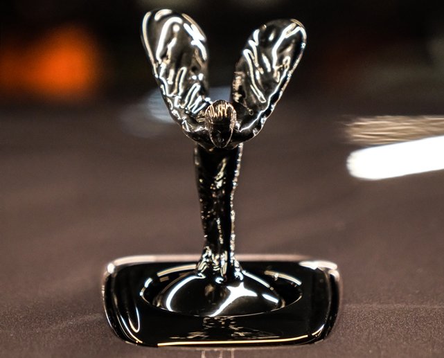 Son derece parlak Spirit of Ecstasy ve Pantheon Grille gibi Rolls-Royce alamet-i farikaları alt üst edildi. Bu bileşenleri basitçe boyamak yerine, geleneksel krom kaplama işlemine, paslanmaz çelik alt tabaka üzerinde birlikte biriktirilen ve koyu cilali özel bir krom elektrolit eklendi.