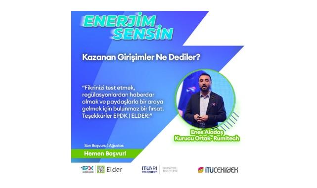 - ELDER ( Elektrik Dağıtım Hizmetleri Derneği): “EPDK - ELDER’in” Enerjim Sensin Programı’yla İTÜ Çekirdek’te desteklenen girişimlerimizden süreç hakkında bilgi almaya ne dersiniz? İşte Enerjim Sensin’in kazanan girişimlerinden Buradayım ve Regenas’ın program hakkındaki yorumları!