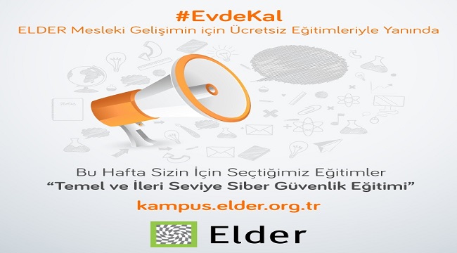 Elektrik Dağıtım Hizmetleri Derneği (ELDER), 'Sen #EvdeKal Biz Eğitimleri Ücretsiz Olarak Size Getiriyoruz! Bu hafta sizin için seçtiğimiz eğitimler "Temel ve İleri Seviye Siber Güvenlik Eğitimi" Detaylı bilgi için http://kampus.elder.org.tr