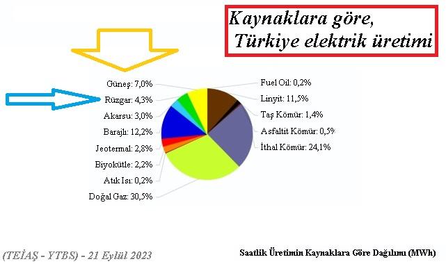 - TEİAŞ (Türkiye Elektrik İletim AŞ) YTBS (Yük Tevzi Bilgi Sistemi), 21 Eylül 2023 Perşembe, Günlük Üretim Verileri.