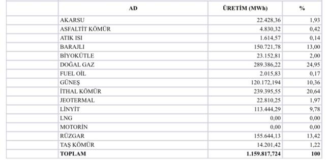 Dün Türkiye'de kaynaklara göre elektrik üretiminde ise doğal gaz santralleri ilk sırada yer aldı. Üretilen toplam elektriğin yaklaşık yüzde26'sını doğalgaz santralleri üretti.