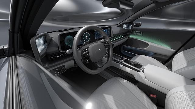 Yeni IONIQ 6'nın iç tasarımı, daha konforlu bir sürüş ve daha sezgisel bir kullanıcı deneyimi için geliştirilmiş. Sürüş hissiyatını artıran yeniden tasarlanmış bir direksiyon simidi ile kullanıcısını karşılayan iç mekan, yeni tip kapı döşemelerine de sahip. Orta konsol düzeni de gelişmiş yolculuk deneyimi için rafine edilmiş. Yeni tip klima kontrol ekranı, kullanım kolaylığını artırmak için genişletilmiş.
