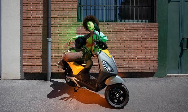 Modelin kendine özgü tasarımı, kentsel elektrikli ulaşımın gerektirdiği minimalizmi benimserken, etkileyici tasarım, üstün malzeme kalitesi ve Piaggio scooter’larına özgü işçilik kalitesinden ödün vermiyor. Hem kompakt hem de koruyucu özelliklere ön grenajın üst kısımda Piaggio araçlarına özgü ‘kravat’ simgesi bulunuyor. LED farlar, aracın temiz ve kavisli yan hatlarını tamamlayarak dinamik görünümü destekliyor. Şık ve ince arka kısım ise yine LED ince stop lambalarıyla son buluyor.