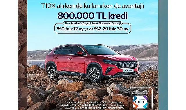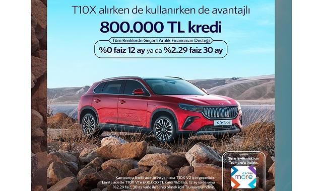 Togg, yılın son kampanyasında kurumsal müşterileri için ticari finansman desteğinin kapsamını da genişletti. Buna göre anlaşmalı bankalarda T10X için geçerli 1.500.000 TL krediye yüzde 2.80 faizli 36 ay veya yüzde 2.97 faizli 48 ay seçeneği sunulacak.