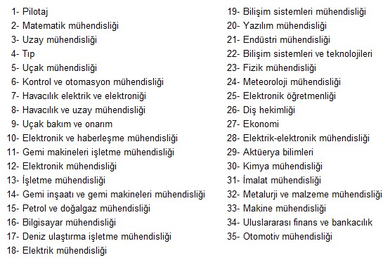 Lisans mezunlarının kazanç durumları incelendiğinde, aylık ortalama kazancı en yüksek olan beş bölüm sırasıyla; pilotaj, matematik mühendisliği, uzay mühendisliği, tıp ile uçak mühendisliği oldu.