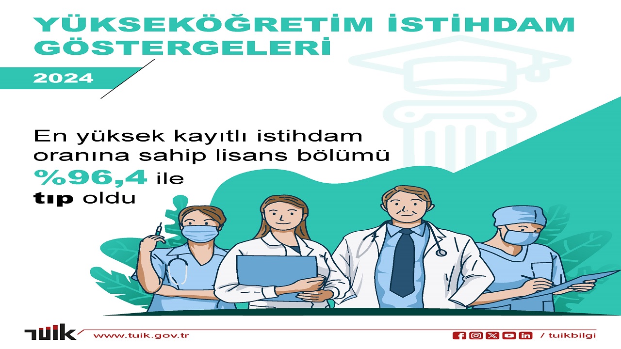 TÜİK açıkladı: Tıp, özel eğitim ve elektrik öğretmenliği en fazla iş bulan ilk 3 lisans bölümü ve Pilotaj, matematik öğretmenliği ve uzay mühendisliği en çok kazan lisans bölümleri oldu.