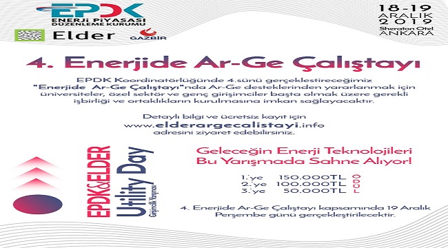 ELDER'in (Elektrik Dağıtım Hizmetleri Derneği) konuyla ilgili bilgi paylaşımı şöyle: 4. Enerjide Ar-Ge Çalıştayına hala kayıt olmadınız mı? Kayıt için http://elderargecalistayi.info Son kayıt tarihi 9 Aralık, Pazartesi.