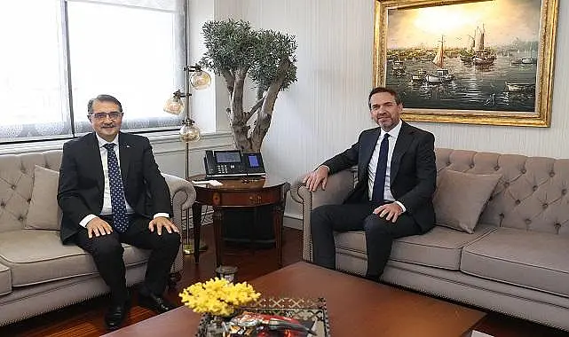 ''Geçmiş Dönem Enerji ve Tabii Kaynaklar Bakanımız Sayın Fatih Dönmez ile Bakanlığımızda bir araya geldik. Nazik ziyaretleri için teşekkür ediyorum.''- Alparslan Bayraktar - Enerji ve Tabi Kaynaklar Bakanı