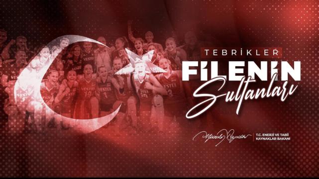 "Voleybol Kadınlar Milletler Ligi Şampiyonluğunu ülkemize getiren Filenin Sultanlarını tebrik ediyor, yaşattıkları gurur ve mutluluk için teşekkür ediyoruz."- Alparslan Bayraktar - Enerji ve Tabii Kaynaklar Bakanı