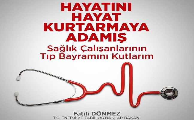 Enerji ve Tabi Kaynaklar Bakanı Fatih Dönmez: Küresel bir tehdit olan koronavirüsle mücadelede insan sağlığı için gecesini gündüzüne katan tüm sağlık çalışanlarımızın #14MartTıpBayramı kutlu olsun.