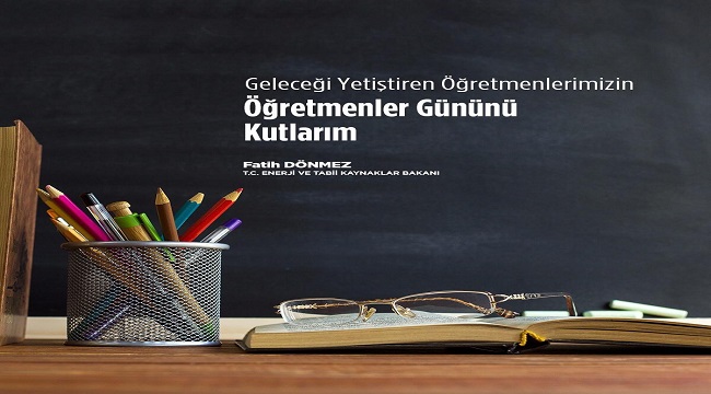Enerji ve Tabi Kaynaklar Bakanı (ETKB) Fatih Dönmez, 24 Kasım Öğretmenler Günü nedeniyle bir mesaj yayınladı. Bakan Dönmez'in mesajı şöyle: Emekleriyle geleceğimizi inşa eden kıymetli öğretmenlerimizin 24 Kasım Öğretmenler Günü’nü kutluyor, görevi başında şehit olan öğretmenlerimizi saygı ve rahmetle anıyorum. Dünümüz, bugünümüz ve yarınımız; tarihimiz, dilimiz ve ilmimiz sizlere emanet.