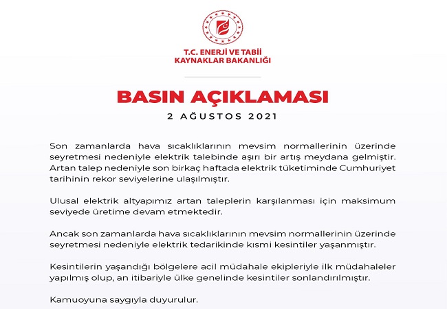 Enerji Bakanlığı - Elektrik kesintileri...