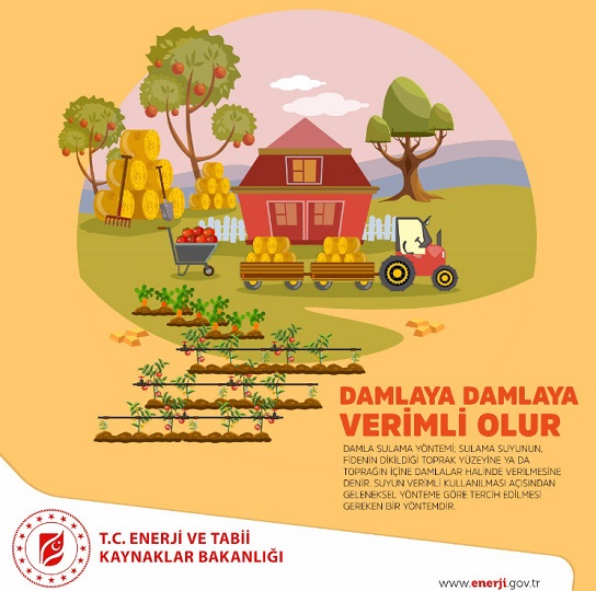Enerji ve Tabi Kaynaklar Bakanlığı (ETKB), su verimliliğiyle ilgili önemli bir bilgilendirme yaptı. Bakanlık, sosyal medya hesabı üzerinden yaptığı bilgilendireme şöyle: Suyumuzu verimli kullanarak daha az suyla daha fazla tarımsal üretim gerçekleştirebiliriz.