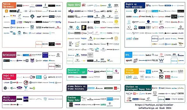 Harita, yapay görüden robotik süreç otomasyonuna (RPA), otonom araçlardan akıllı platformlara kadar 12 kategorideki girişimleri kapsıyor. 2024 itibarıyla, her kategorideki girişim sayıları şöyle dağılıyor: