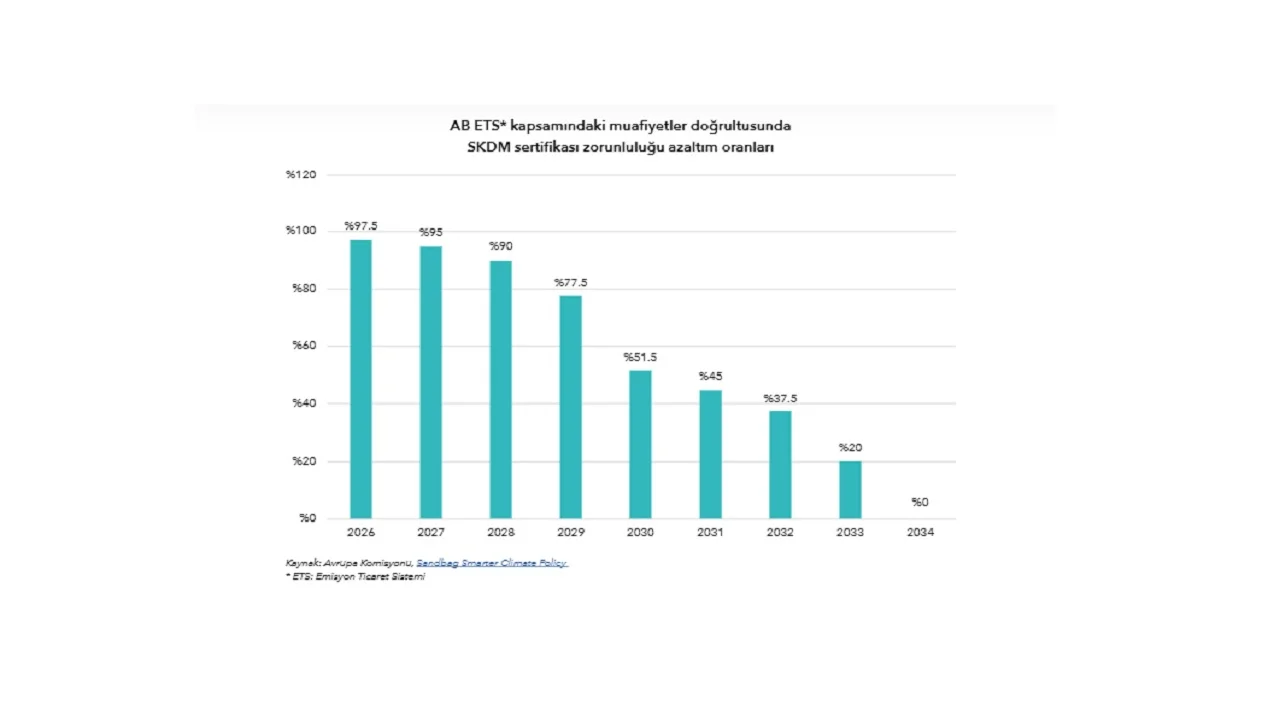 AB’nin Yeşil Mutabakat paketi çerçevesinde “karbon kaçağını” önleme amacıyla tasarlanan SKDM, ilk aşamada demir-çelik, alüminyum, çimento, gübre, hidrojen ve elektrik sektörlerini kapsıyor. 2034’e kadar AB içindeki üreticilere sağlanan muafiyetlerin kademeli olarak kaldırılması ve ithal ürünlerin de eşit şekilde vergilendirilmesi öngörülüyor.