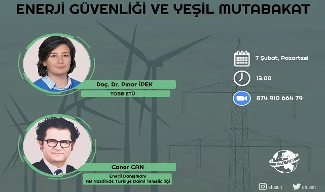 TOBB ETÜ SUİT: 'ETU SUİT olarak düzenleyeceğimiz “Enerji Güvenliği ve Yeşil Mutabakat” konulu etkinliğimiz, Pınar İpek (@pinaripek_etu) ve Caner Can’ın (@hcanercan) katılımıyla 7 Şubat Pazartesi günü saat 13.00’da gerçekleşecektir.Hepinizi aramızda görmek isteriz.'