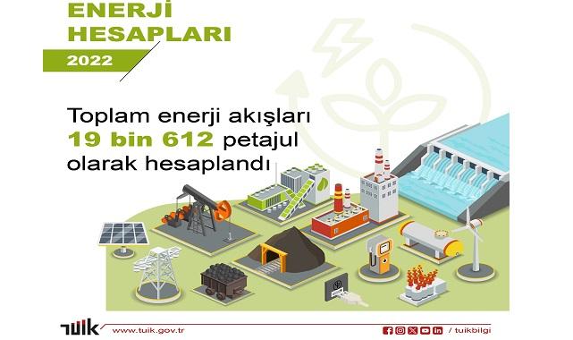 Toplam enerji akışları 19 bin 612 petajul (1)olarak hesaplandı: Enerji ürünleri, 2022 yılında toplam fiziksel enerjinin kaynakları içerisinde yüze 53,4 ile en büyük paya sahip oldu. Enerji artıklarının payı yüzde 36,0 olurken doğal enerji girdilerinin payı ise yüzde 10,5 olarak hesaplandı.
