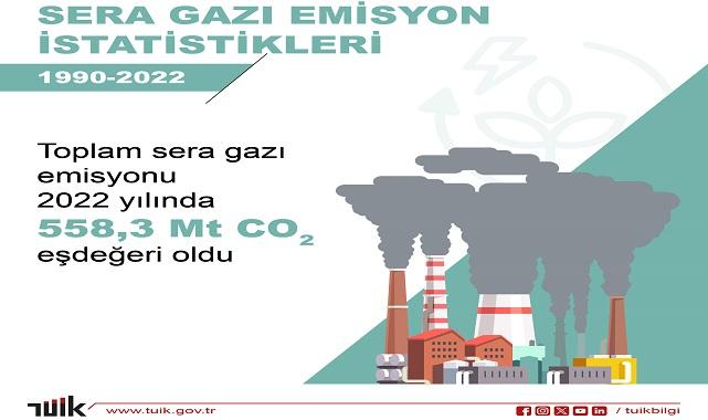 Sera gazı envanteri sonuçlarına göre, 2022 yılı toplam sera gazı emisyonu bir önceki yıla göre %2,4 azalarak 558,3 milyon ton (Mt) CO2 eşdeğeri (eşd.) olarak hesaplandı. Kişi başı toplam sera gazı emisyonu 1990 yılında 4,1 ton CO2 eşd., 2021 yılında 6,8 ton CO2 eşd. ve 2022 yılında 6,6 ton CO2 eşd. olarak hesaplandı.