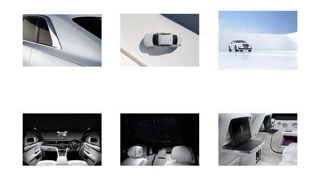 Tüm kabin havasını, Rolls-Royce’un mikro ortamından neredeyse tüm ultra ince parçacıkları iki dakikadan daha kısa sürede kaldırabilen Nano-Fleece filtre aracılığıyla kanalize ediyor. El yapımı alüminyum gövde yapıları sayesinde, arabanın ana yapısı Silver Dawn ve Silver Cloud modellerini çağrıştıran, kapalı hatlarla kesintisiz tek bir akışkan kanvas gibi görünüyor. İkonik heykeli Spirit of Ecstasy (Coşkunun Ruhu) ilk kez panel çizgileriyle çevrili değil, kendi kaporta "gölü" içinde yer alıyor.