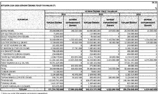 ''2024-2026 Dönemi Yatırım Programı Hazırlıkları ile İlgili 2023/14 Sayılı Cumhurbaşkanlığı Genelgesi' Mükerrer Resmi Gazete de yayınlandı. BOTAŞ, EÜAŞ gibi kamu Enerji KİT'lerininde olduğu listede (Kamu İktisadi Teşekkülleri - KİT) ''Yatırım Ödenek Teklif Tavanları'' için aşağıdaki tabloya bakınız...