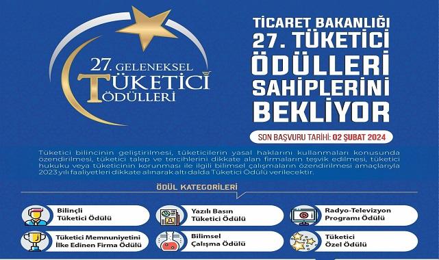Ticaret Bakanlığı (Tüketicinin Korunması ve Piyasa Gözetimi Genel Müdürlüğü): ''Tüketici bilincinin geliştirilmesi, tüketicilerin yasal haklarını kullanmaları konusunda özendirilmesi, tüketici talep ve tercihlerini dikkate alan firmaların teşvik edilmesi, tüketici hukuku veya tüketicinin korunması ile ilgili bilimsel çalışmaların özendirilmesi amaçlarıyla 2023 yılı faaliyetleri dikkate alınarak altı dalda Tüketici Ödülü verilecektir.
