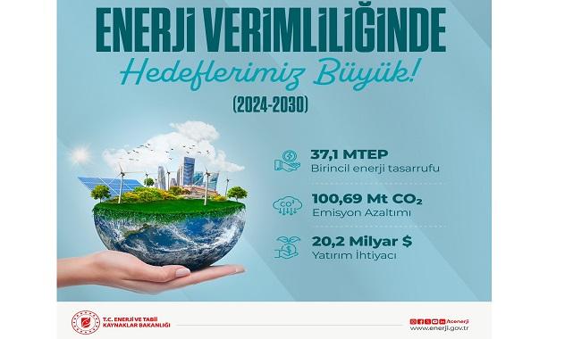 Enerji ve Tabii Kaynaklar Bakanlığı (ETKB, ''Enerji Verimliliğinde Hedef Büyük'' başlıklı yeni bilgi paylaşımı yaptı. Enerji Bakanlığı bilgi paylaşımına göre, ''II. Ulusal Enerji Verimliliği Eylem Planı (2024-2030)'' kapsamında enerji verimliliğine yapılacak toplam yatırımı tutarı 20,2 milyar dolar. Aynı dönemde sağlanacak birincil enerji tasarrufu ise 37,1 MTEP olacak. Bu dönemde toplam emisyon azaltımı hedefi ise 100,69 Mt CO2 olarak belirlendi.