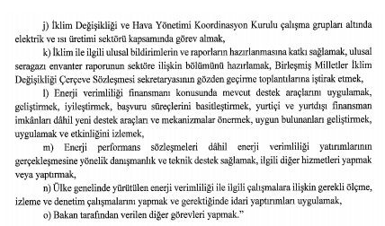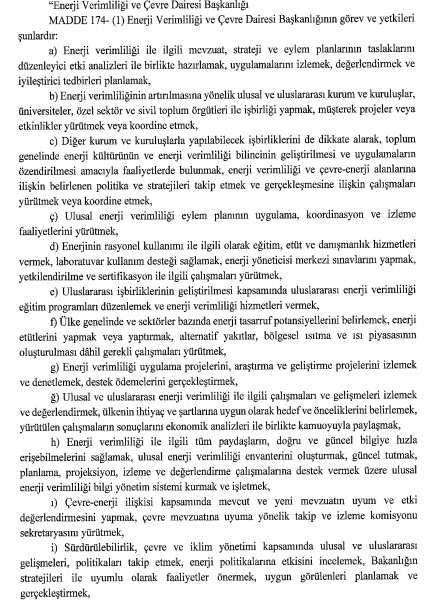 'Enerji Verimliliği ve Çevre Dairesi Başkanlığı' Maddesi