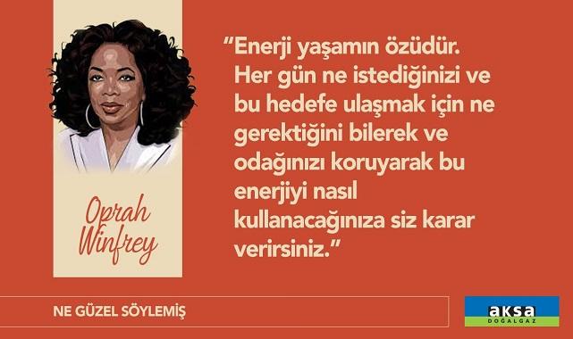 ''Enerji yaşamın özüdür. Her gün ne istediğinizi ve bu hedefe ulaşmak için ne gerektiğini bilerek ve odağınızı koruyarak bu enerjiyi nasıl kullanacağınıza siz karar verirsiniz.'' Oprah Winlrey