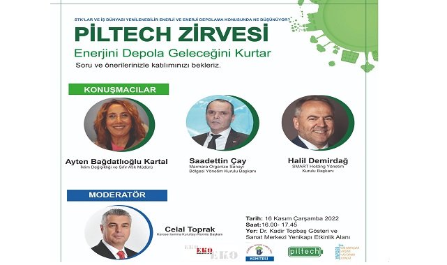 “Enerjinin Depolama Geleceğini Kurtar” başlığı ile 16 Kasım Çarşamba 2022 tarihlerinde Küresel Isınma Kurultay Komitesi ve Eko Fuarcılık tarafından düzenlenen Pil Teknolojileri ve Elektro-Mobilite PİLTECH etkinliğimiz Dr. Mimar Kadir Topbaş Gösteri ve Sanat Merkezi'nde yapılacak.
