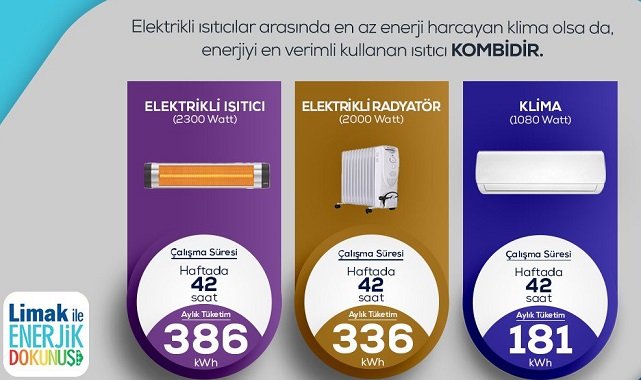 - Elektrikli ısıtıcılar arasında en az enerji harcayan klima olsa da, enerjiyi en verimli kullanan ısıstıcı kombidir.