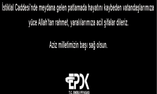 "İstiklal Caddesi'nde meydana gelen patlamada hayatını kaybeden vatandaşlarımıza yüce Allah'tan rahmet, yaralılarımıza acil şifalar dileriz.