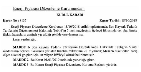 Enerji Piyasası Düzenleme Kurumu (EPDK), elektrik son tedarikçileriyle ilgili iki önemli karar yayınladı. Resmi Gazetede yayınlanan kararların ayrıntıları için haberin sonundaki foto üstüne tıklayınız: