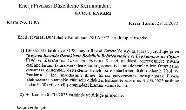 - Enerji Piyasası Düzenleme kurumu (EPDK), daha önce yayınladığı 'Kaynak bazında Destekleme' konulu Kurul kararı tarihiyle ilgili düzeltme yayınladı. ilk ve düzeltme EPDK Kurul kararlarını aşağıda okuyabilirsiniz.