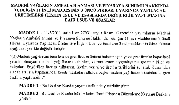 EPDK (Enerji Piyasası Düzenleme Kurumu), Madeni yağ üretimi konulu yeni Kurul Kararı yayınladı. EPDK Kurul Kararı, Resmi Gazete de yayınlandı 9 Mart 20124 tarih ve 32484 sayılı Resmi Gazete). EPDK Madeni yağ üretimi kurul kararını aşağıda, okuyabilirsiniz...