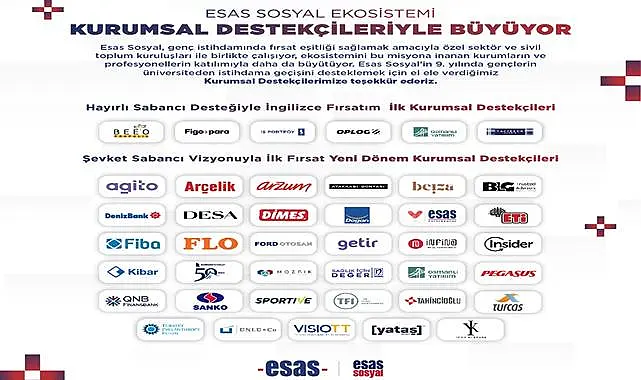 Esas Sosyal’in özgün bir özel sektör ve sivil toplum iş birliği modeli olarak 2019 yılında başlattığı Kurumsal Destek Programı ile ekosisteme katılan kurumlar, “genç istihdamında fırsat eşitliği” misyonu etrafında güçlerini birleştiriyor. Şimdiye kadar yalnızca Şevket Sabancı Vizyonuyla İlk Fırsat Programı Kurumsal Destekçiler tarafından desteklenirken bu yıl Hayırlı Sabancı Desteğiyle İngilizce Fırsatım Programı için de Kurumsal Destek modeli başlatıldı.