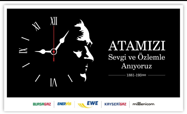 EWE Turkey Holding 10 Kasım nedeniyle bir mesaj yayınladı. Ewe enerji’nin mesajı şöyle: Atamızı sevgi ve özlemle anıyoruz...