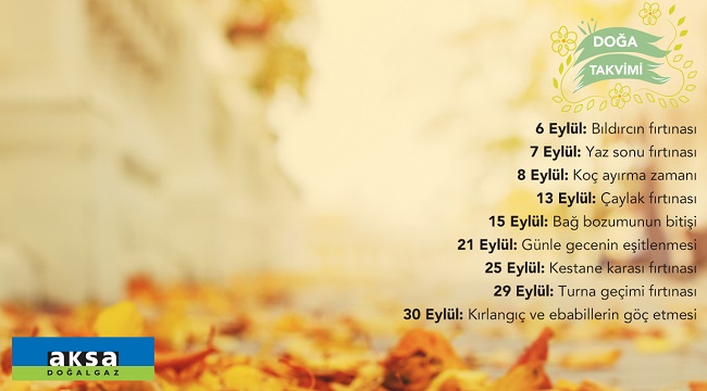 - Eylül 2021 Doğa Takvimi, 6 Eylül'de Bıdırcın Fırtınası ile başlıyor ve 30 Eylül'de Kırlangıç ve Ebabillerin Gçö Etmesi ile sona eriyor.