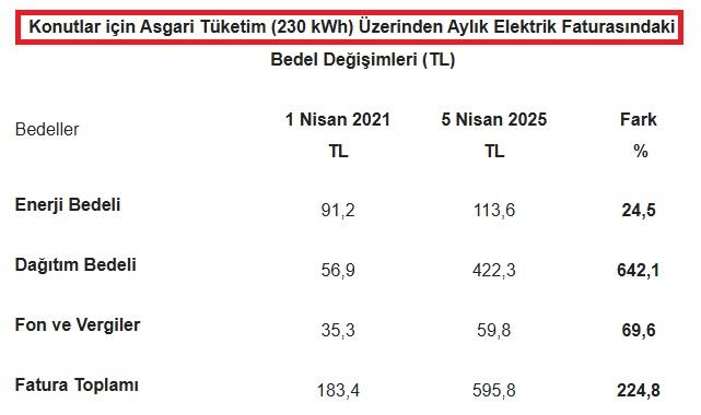 Kaynak: Elektrik Mühendisleri Odası (EMO), Nisan 2025 elektrik birim fiyatları hesplaması (4 kişilk bir aailenin 1 aylık elektrik faturası).
