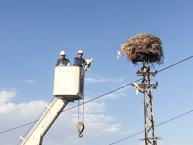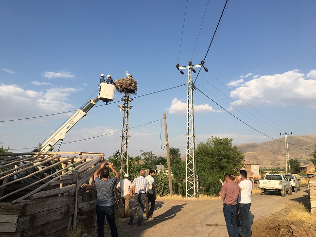 Leyleklerin ilk yuva yaptıkları yıllarda direğin enerjisini kesen ve direğin sadece yuva olarak kullanılmasını sağlayan Fırat EDAŞ ekipleri, bu kez köylülerin ihbarı ile harekete geçerek başarılı bir operasyonla bitkin haldeki 4 yavru leyleği kurtardı.